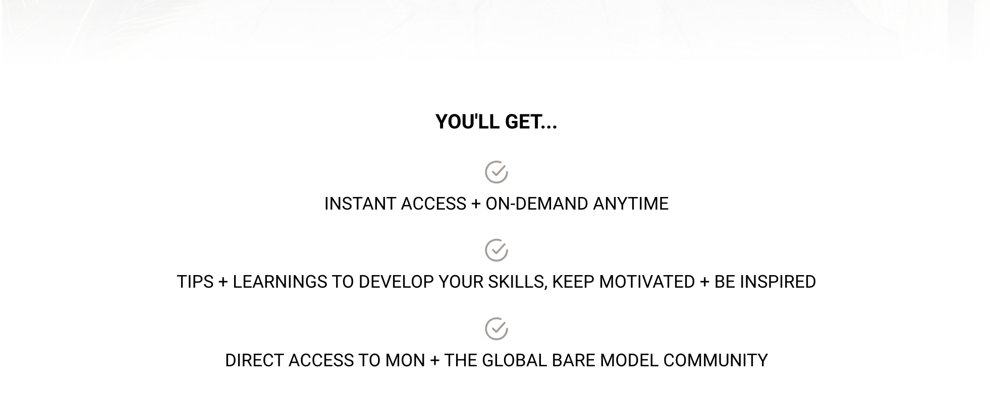 The entire Bare Model course is online and on demand to learn anytime and anywhere.